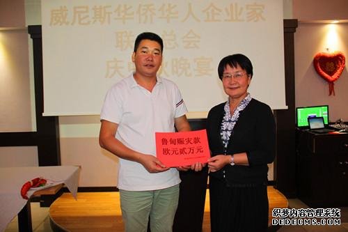 威尼斯华侨华人企业家联合总会为云南鲁甸地震灾区捐款两万欧元,第一常务副会长王金华代表总会移交善款