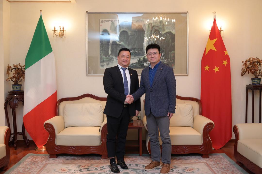 华人头条米兰2026年3月24日电 当地时间24日,威尼斯华侨华人企业家联合总会会长周云强一行拜访中国驻米兰总领馆,与代总领事郑东立、侨务领事任武就威尼斯地区领保联动、华文教育及中意中小企业务实对接等议题进行了深入座谈。随同到访的还有该会第一常务副会长董晓忠、理事长戴其林、副理事长周星福及会长助理陈硕。